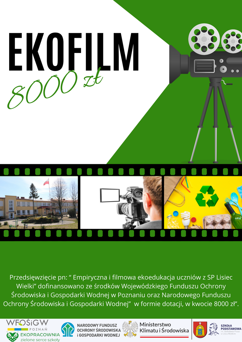 Miło nam poinformować, że pozyskaliśmy dofinansowanie w wysokości 8000,00 zł z WFOŚiGW w Poznaniu na projekt pn. „Empiryczna i filmowa ekoedukacja uczniów z SP Lisiec Wielki”.